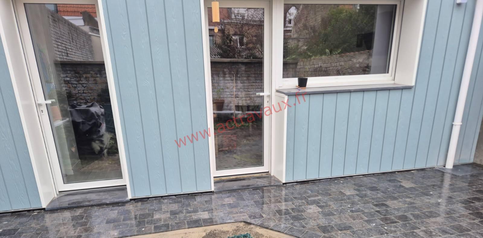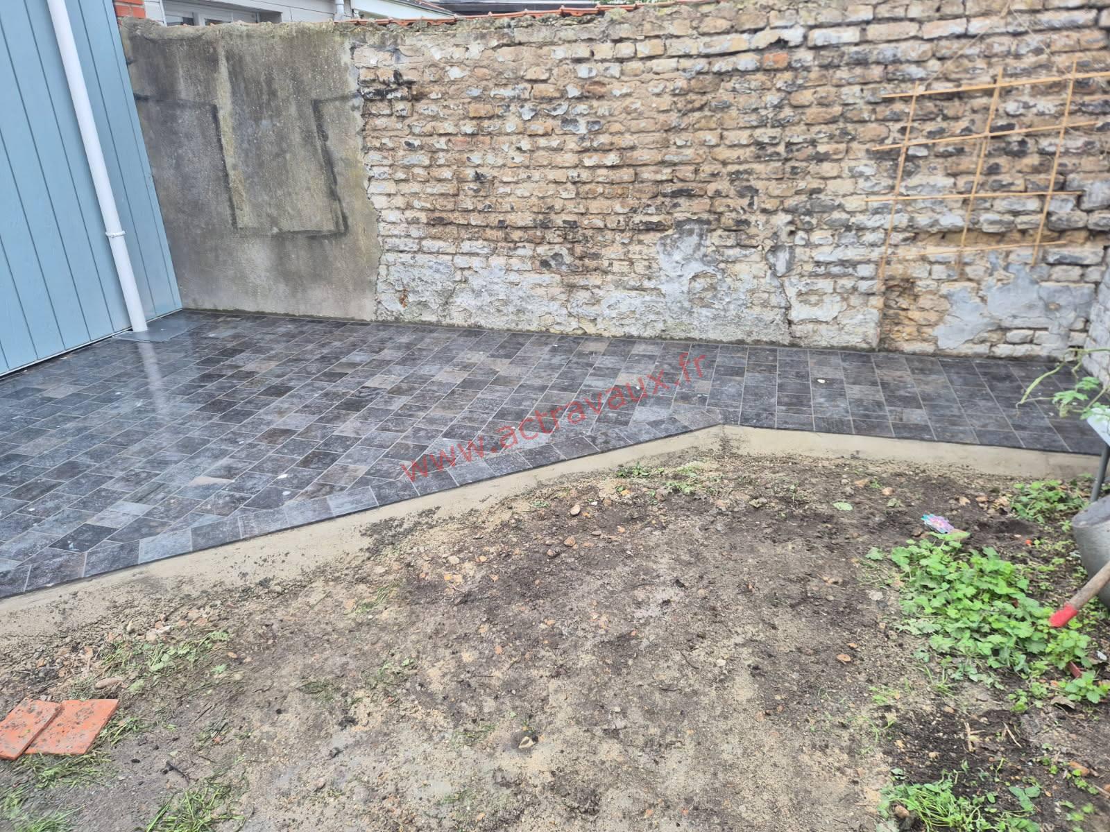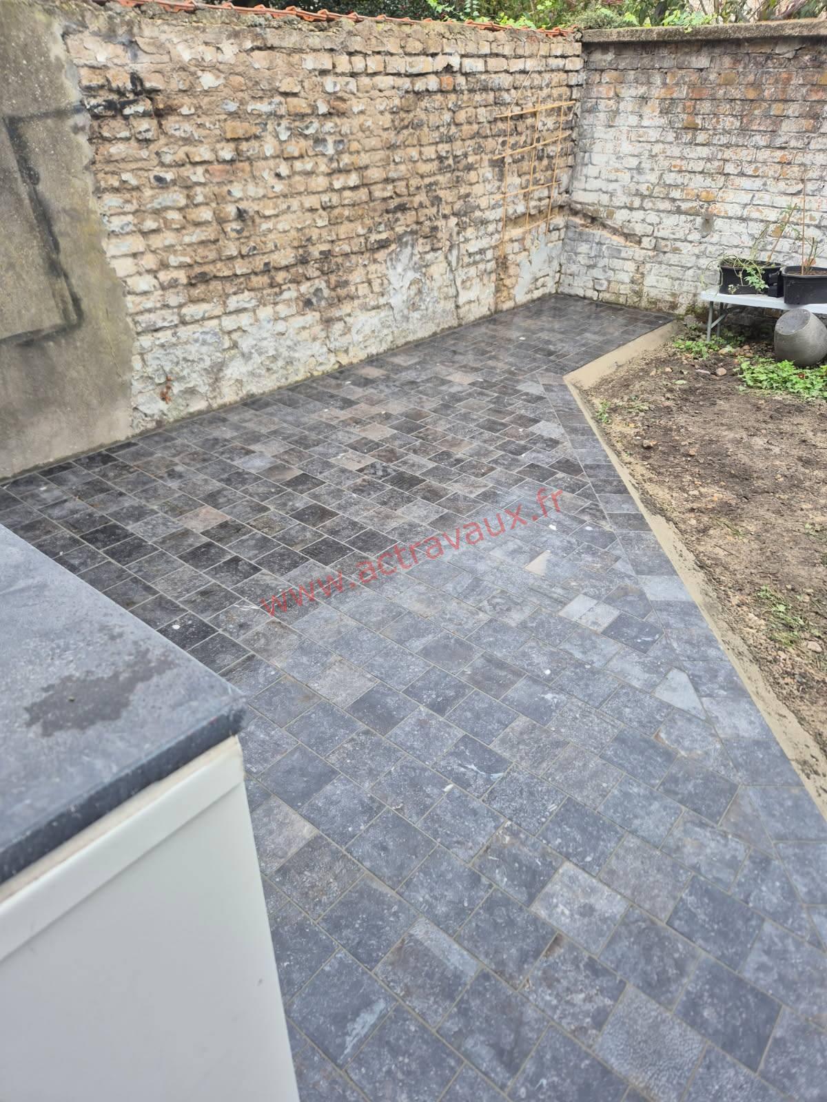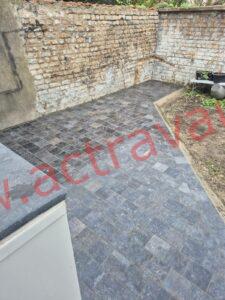Habillage d'une terrasse en pavé pierre bleue 15x15