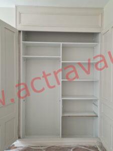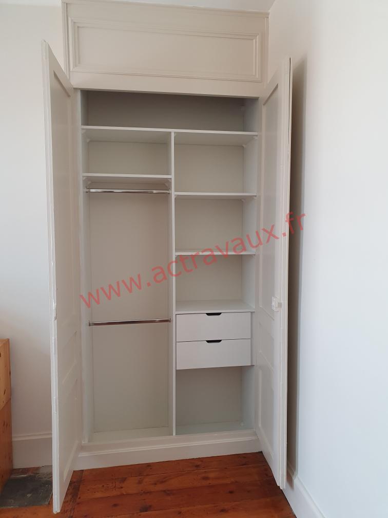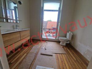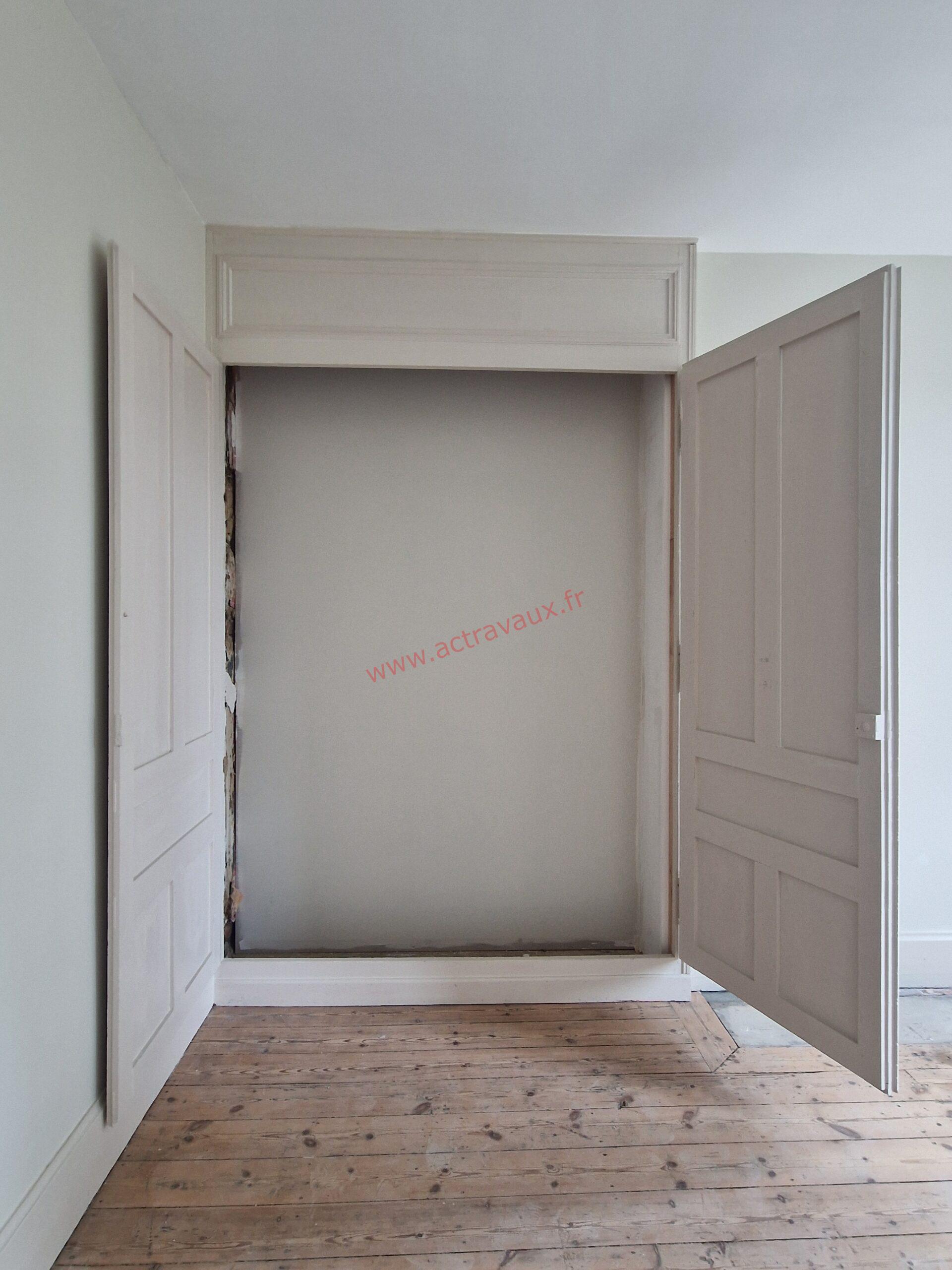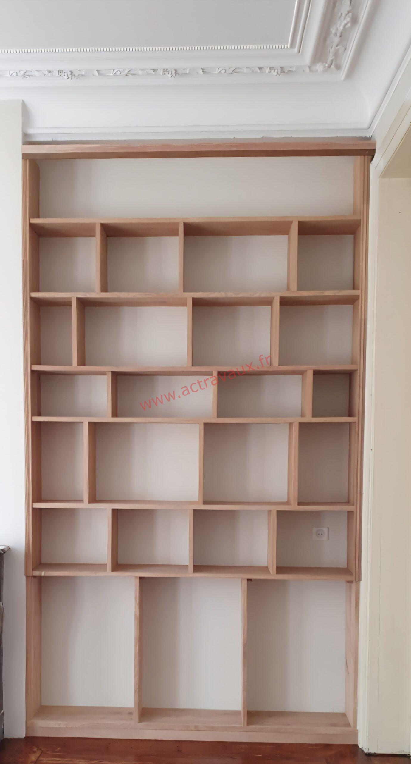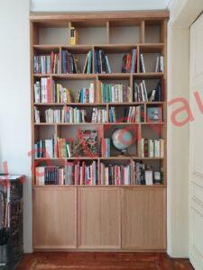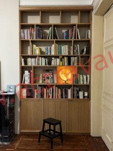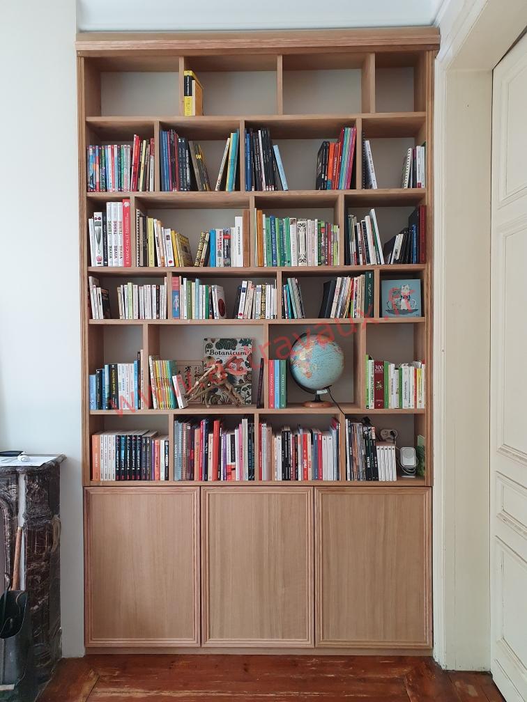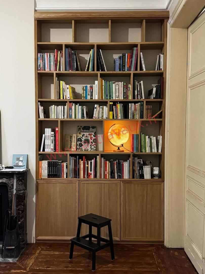 # Ebénisterie : création d'une bibliothèque en chêne, reprise de tous les plinthes périphériques, des moulures portes, contours... du parquet massif, création de placards avec reprise des anciennes portes, sablage et reprise des volets extérieurs ...