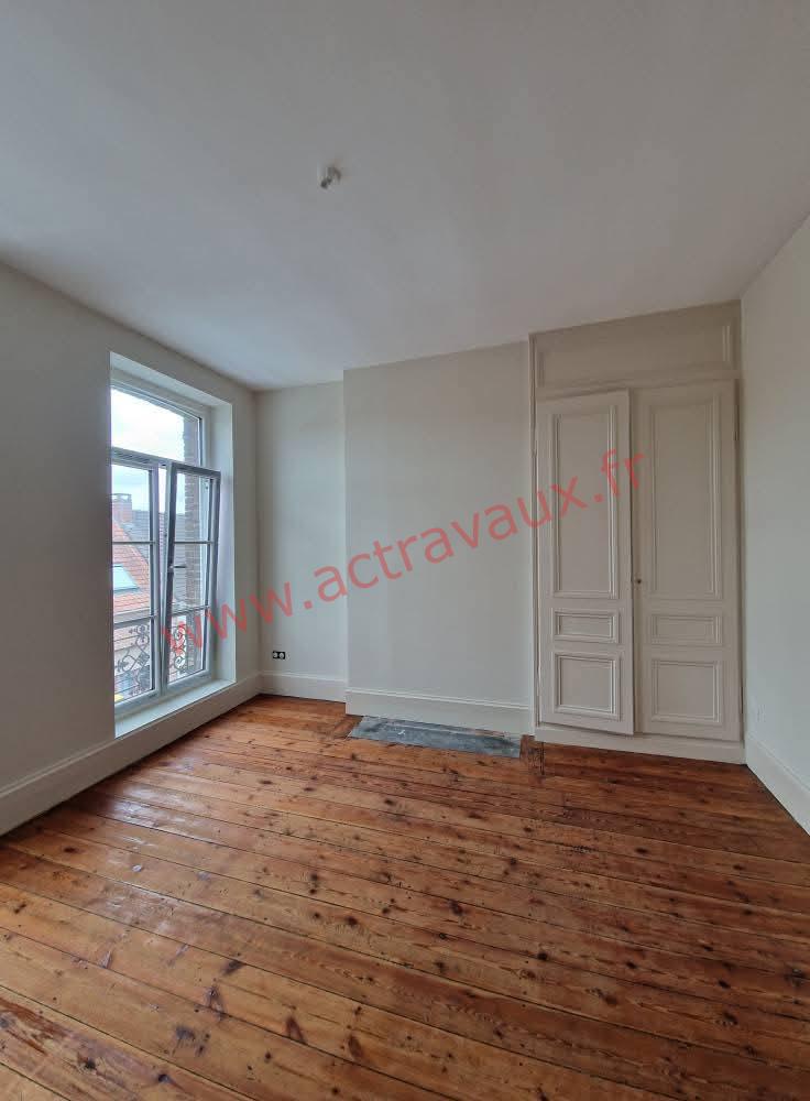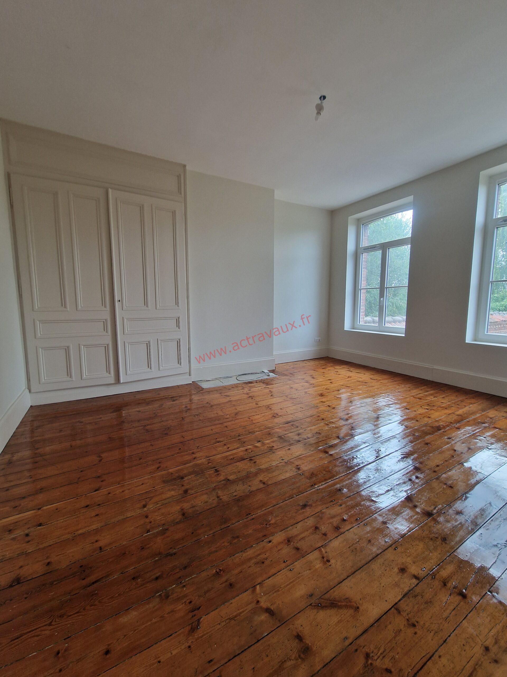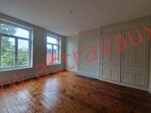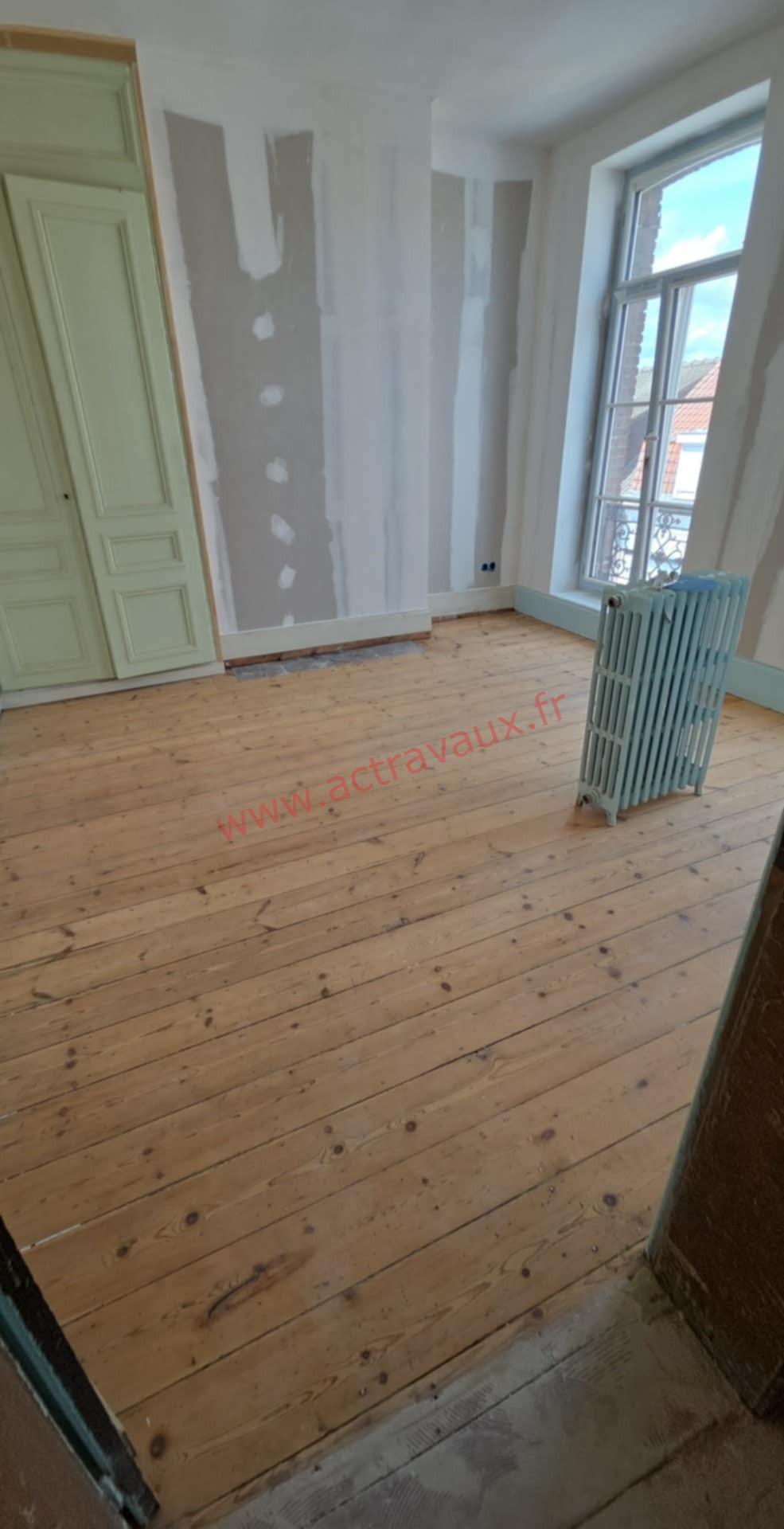 # Peinture : détapissage, reprise des supports par enduit ou fibre, mise en peinture de tous les murs et plafonds, plafonds moulurés, ponçage du parquet massif + escalier et pose de vernis,
