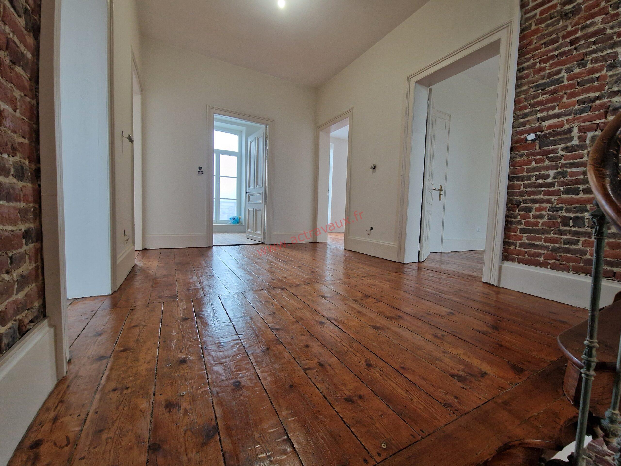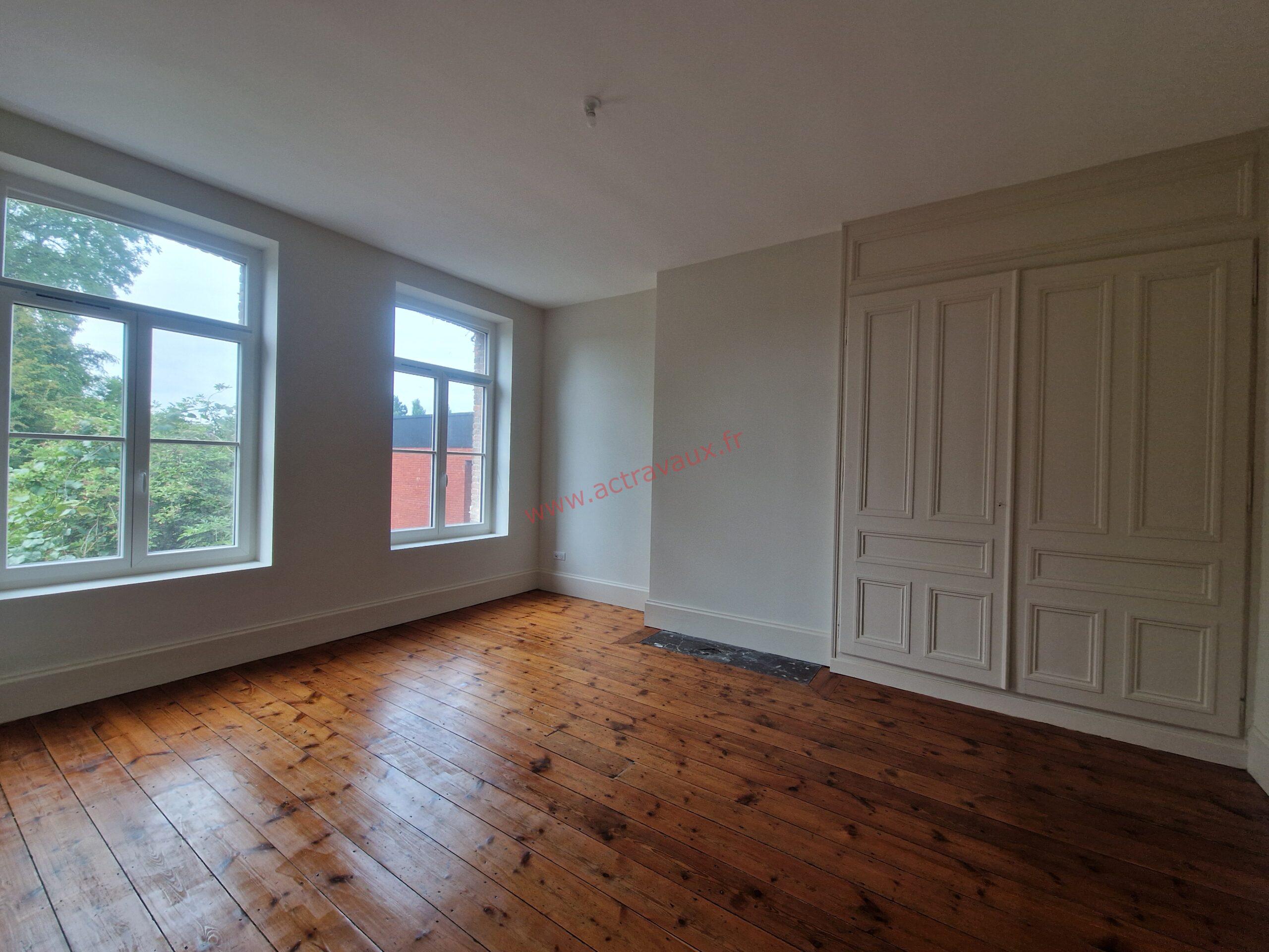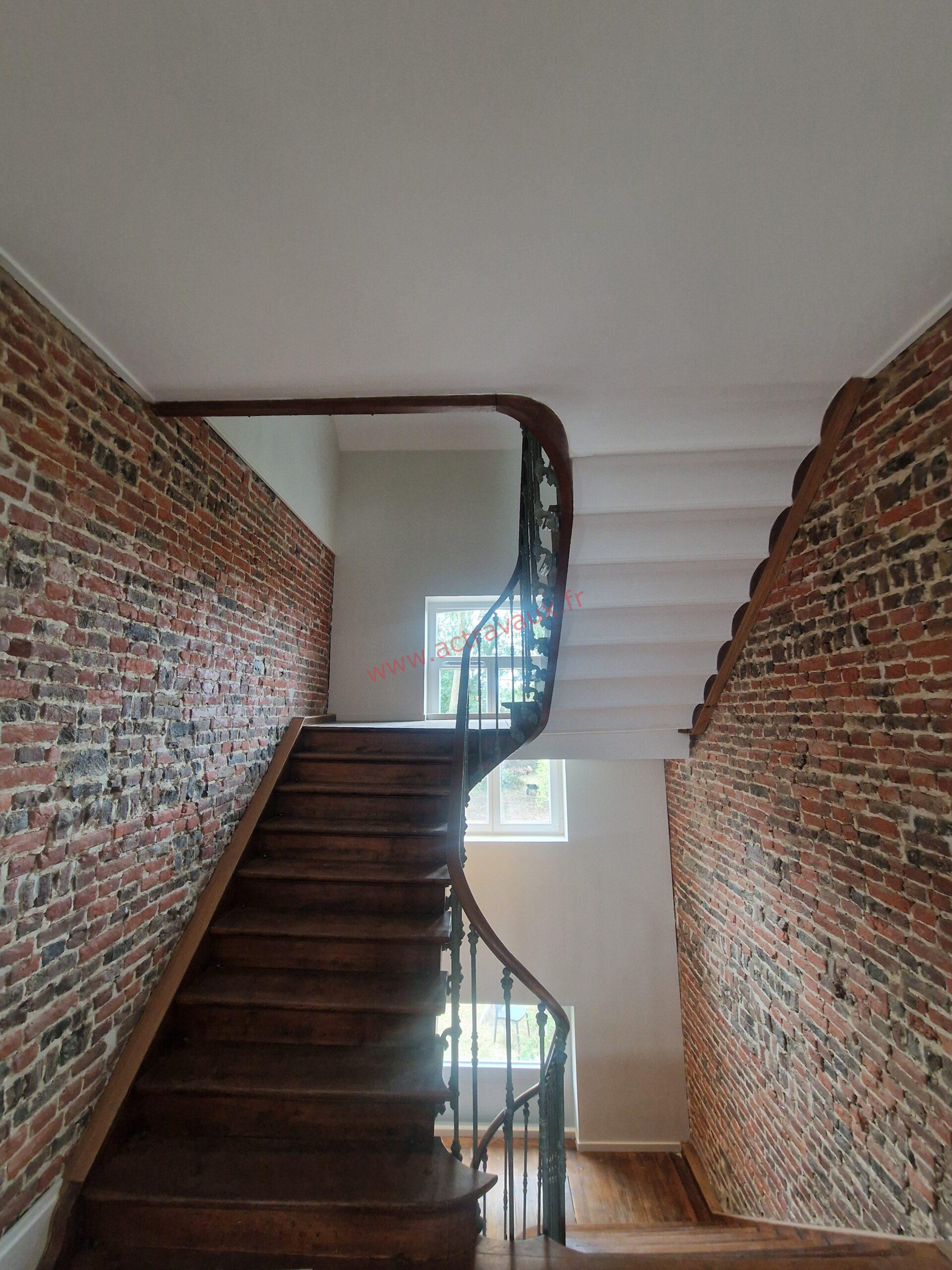# Peinture : détapissage, reprise des supports par enduit ou fibre, mise en peinture de tous les murs et plafonds, plafonds moulurés, ponçage du parquet massif + escalier et pose de vernis,