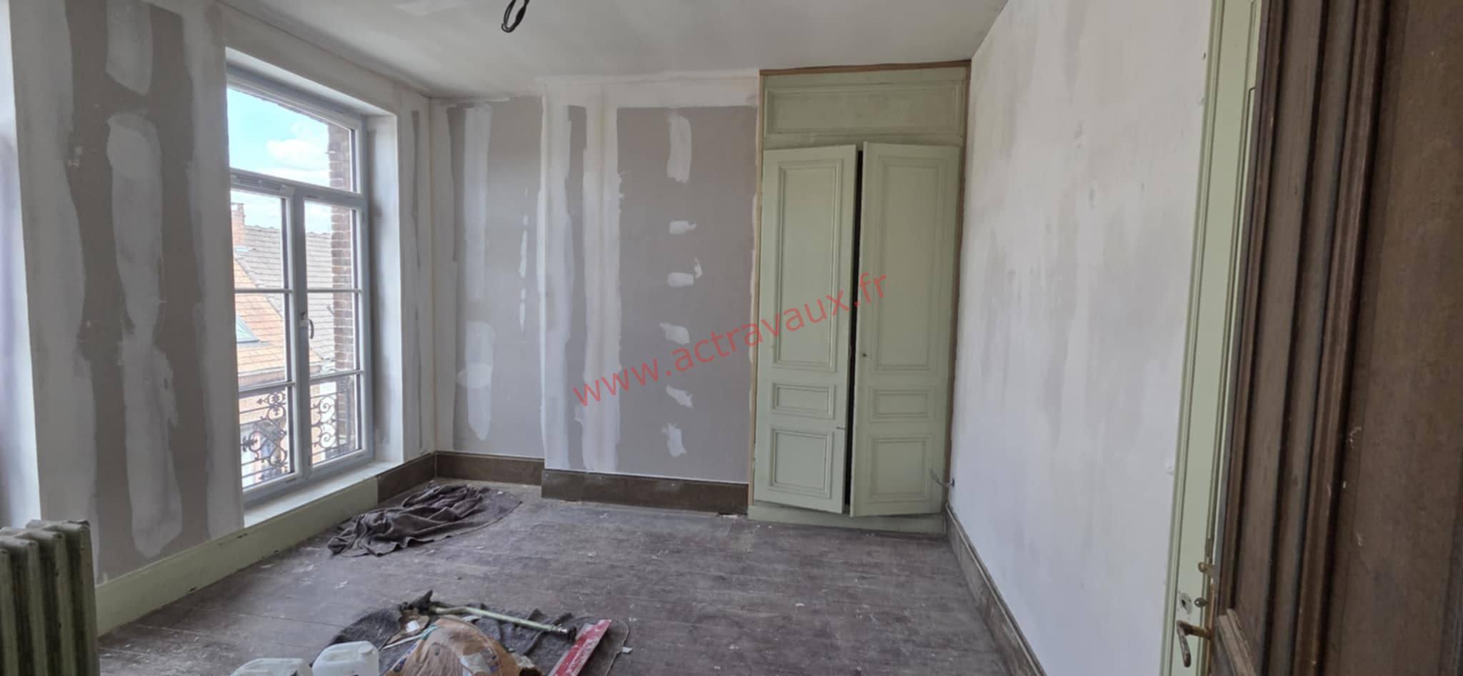 # Isolation plâtrerie : aménagement du grenier "enveloppe thermique" + isolation des murs extérieurs et pignons + cloisons + faux plafond + portes intérieures...